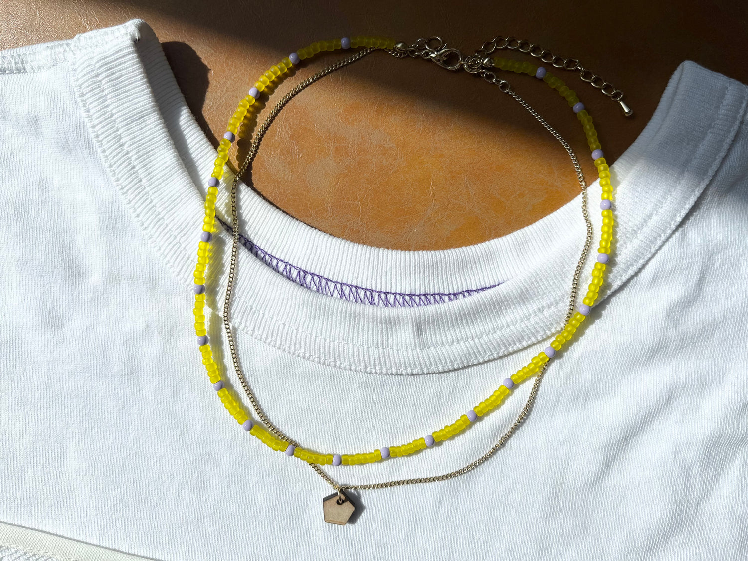 ビーズのネックレスと木🪵も忘れずに。